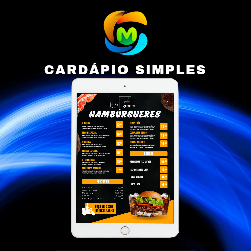 Um meio rápido e prático para seus clientes visualizarem seu cardápio, com informações curtas e claras. Em formato pdf.